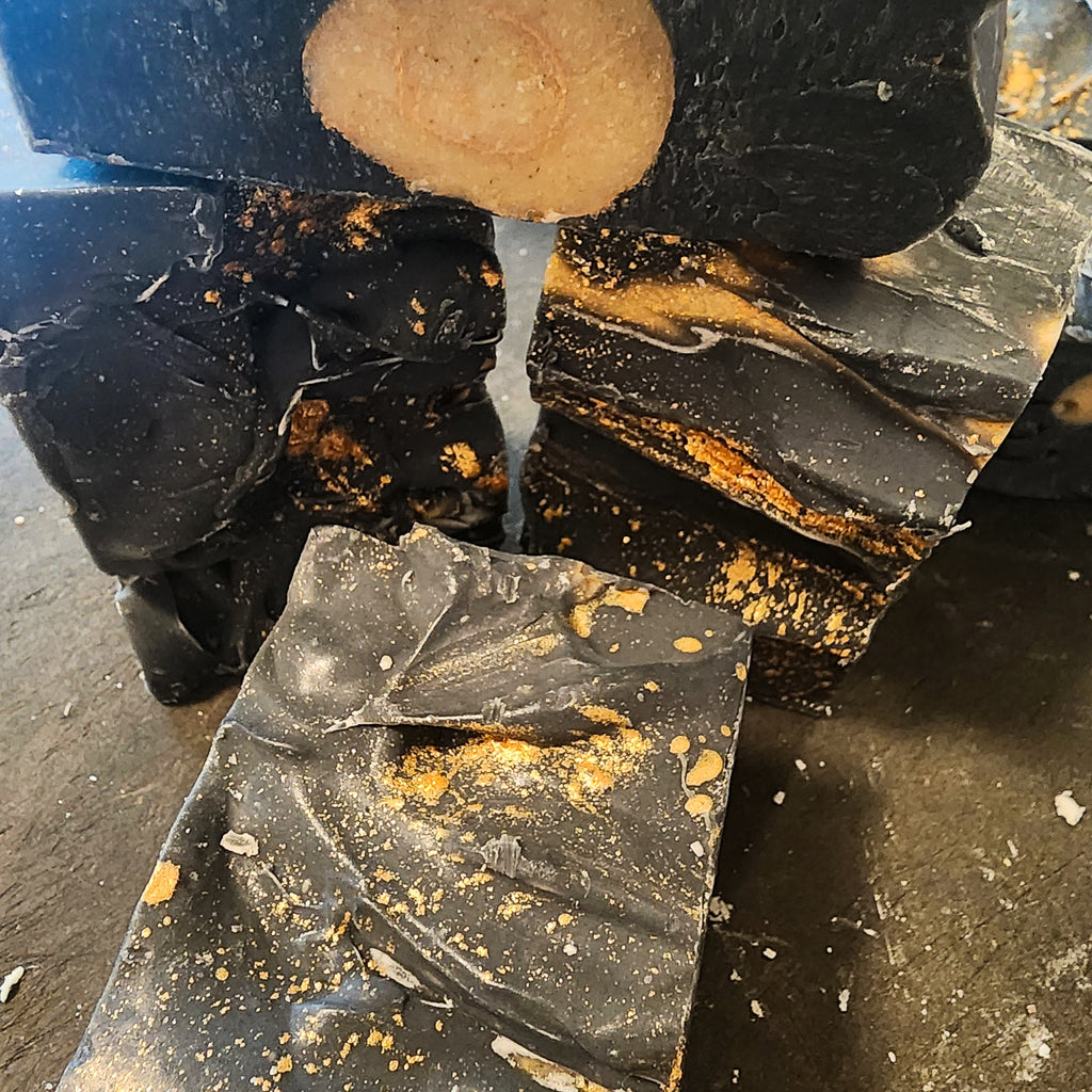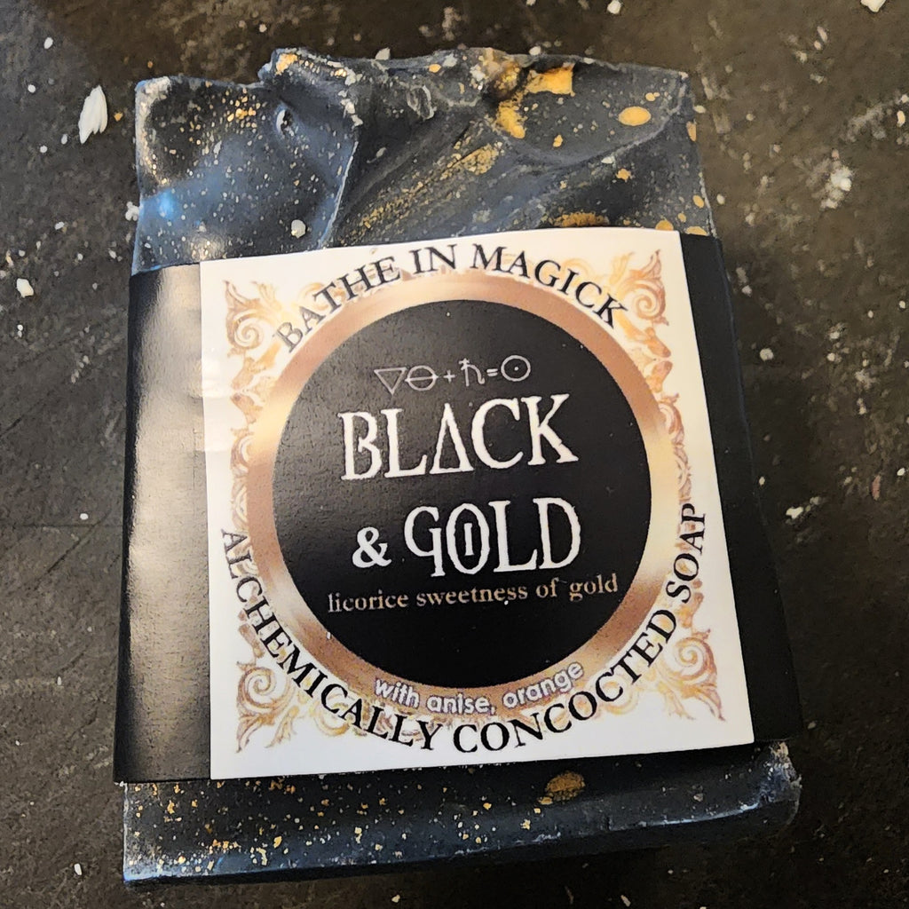 Ingredients - Moonlight (gold/silver/crystal) charged distilled water, organic coconut & virgin olive oil, sodium hydroxide, beeswax, charcoal/clay/plant colourants, non-synthetic pure essential oils of anise & orange & Love, Laughter and Magick